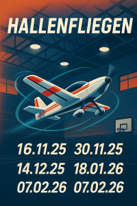 Die Hallenflugsaison ist eröffnet. Die Termine findet ihr wie gewohnt auch im Kalender oder im digitalen Flugbuch